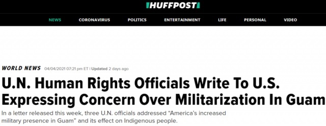 近日,联合国人权理事会的三名特别报告员发布了一封致美国政府的联合指控函,对美国在未与查莫罗人民进行充分协商的情况下增强关岛军备,以及由此对原住民土地、资源、环境和文化权利造成的威胁表示“严重关切”。