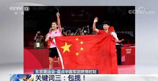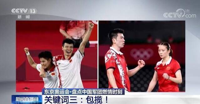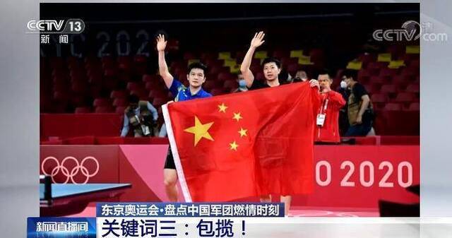第三个关键词:包揽。本届奥运会上,无论是初出茅庐的少年,还是身经百战的老将,他们奋力拼搏,一路过关斩将,最终与队友会师决赛,让赛场上一次次同时升起两面五星红旗。