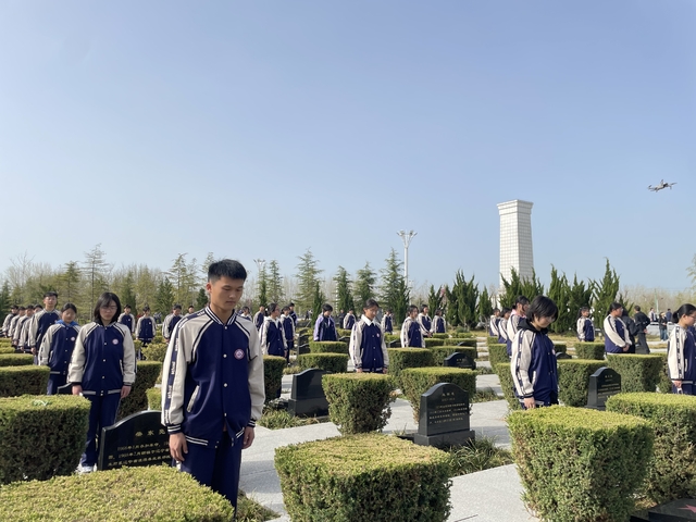 “一寸山河一寸血。生活在和平幸福的今天,我们将铭记革命精神、传承红色基因……”师生代表擦拭墓碑、敬献鲜花,在烈士墓前鞠躬、默哀,表达对革命先烈的深切缅怀。纪念碑前的一堂堂特殊的思政课,引导广大青少年继承先烈遗志,坚定理想信念,立志报效祖国。