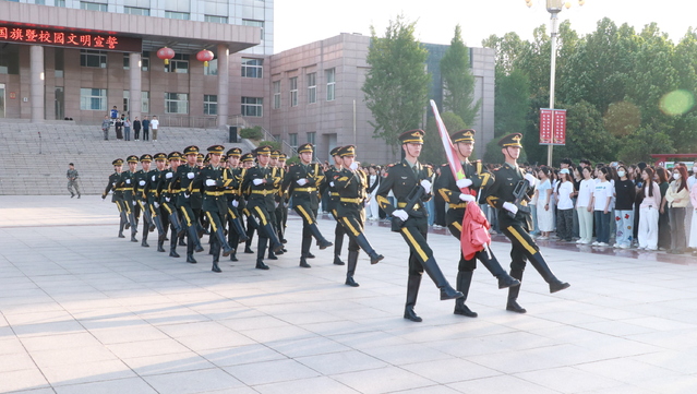 为加强爱国主义教育,培育校园文明新风尚,5月12日,河南科技职业大学举行周一升国旗暨校园文明宣誓活动。